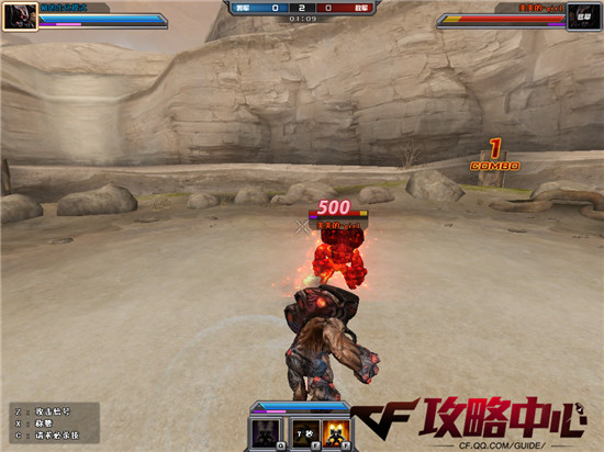 进入游戏后,会提示你打败敌人的基本步骤,Q为必杀技,F E为普通攻击,每个人的血量都是一样的,怎样打败敌人开得看着的灵活运用。