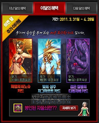 韩服DNF魔盒新活动 可开出光火暗三属性卡