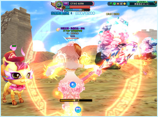 时空巨兽在场景地图的东面,选中后对其使用破魔珠击破防护罩。再用攻击猛殴吧!