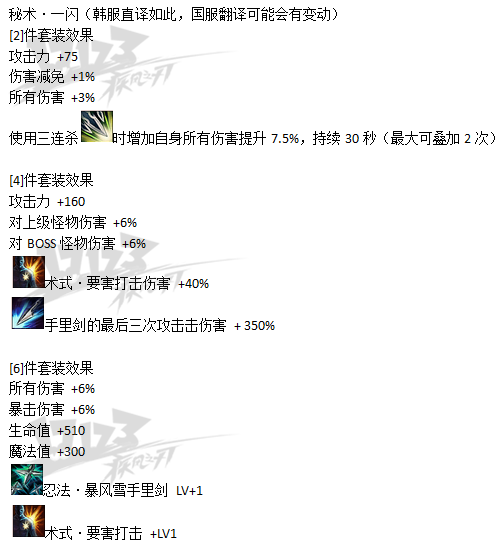 173独家汉化韩服疾风之刃以太点套装属性,这个是刺客猎刃星篇,其他职业巡音我会今天起陆续给大家汉化并分享给广大韩服玩家和国服玩家