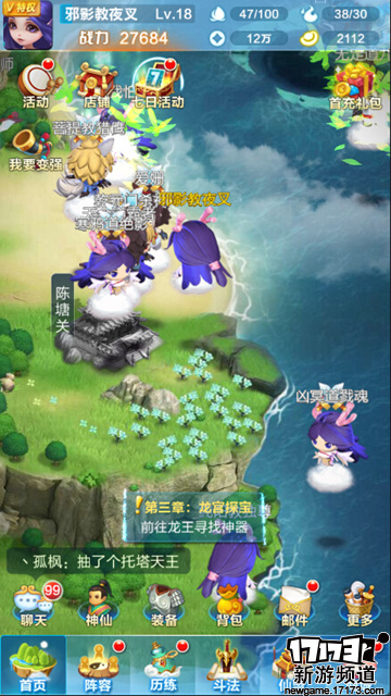 手游《道友请留步》以竖屏作为其主要的展示方式,游戏的主界面上则是直接将一个个关卡整合在了一个大地图上,玩家则能够点击屏幕来控制主角在这个大世界之中自由飞行。在不同的地图区域之中有着不同的关卡,进入其中就能够进行挑战。游戏的副本分为普通、精英和活动副本三个类型,普通副本共40个章节并划分为多个小章节为游戏的耐玩性提供了的保障。精英副本以及活动副本提供各种资源产出也能够满足玩家日常游玩的需求。