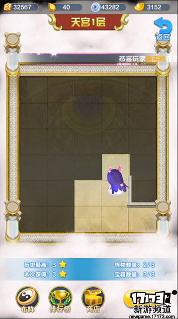 除了运宝之外,游戏中还有着丰富的奖励玩法,如在大闹天宫模式下,将爬塔玩法在展现形式上增加场景迷雾,玩家每揭开一块阴影区域都会出现敌人或宝箱,虽说与一般游戏之中的爬塔玩法并无二致,但是在变换了表现方式之后却带给人以全新的游玩体验。