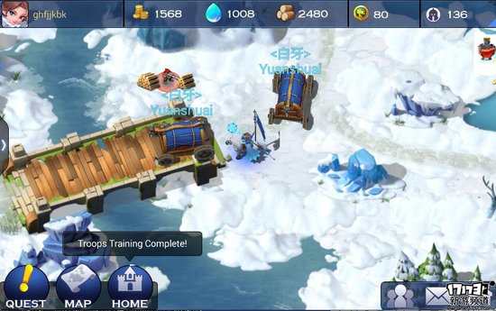 随着游戏进程的推进你会发现,你并非一个人在进行游戏,在周围会有许多其他玩家的镜像,虽然他们不会抢夺你地图上的资源,但是地图上的各个城镇就成为各个玩家们进行争夺的核心内容。首先属于己方的城镇能够产出资源并供你运回自己的主城(运镖玩法),而敌方的城镇首先需要使用投石机对城墙进行摧毁后再行攻城。
