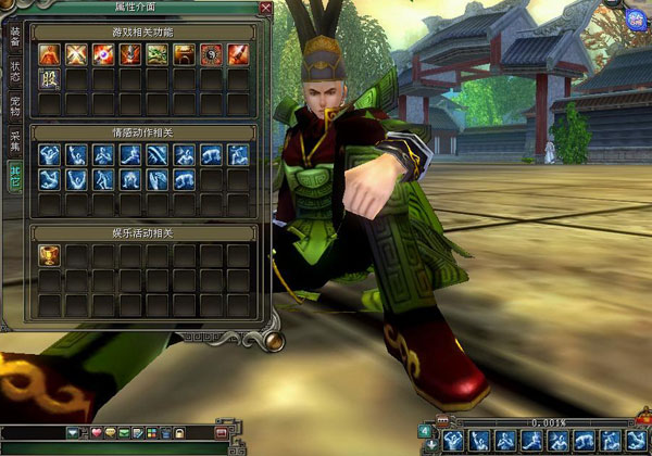 《武林群侠传2》中的情感动作系统极为丰富,通过简单的按键即可操纵人物的使出各种表情或是动作,包括挥手、抱拳等各种丰富的肢体语言,使聊天不再单调。多种动作组合后使用,让角色更趋于真实,在玩家交流抒发情感时,可以起到更好的感情传递,增加游戏乐趣的目的。 在游戏中,鼠标点击屏幕右下角的“属性”菜单(快捷键:ALT+A),属性窗口中最后一个“其它”菜单中的第二栏便是情感动作相关内容。 直接点击窗口内的动作表情图标就可以做出各种表情或是动作。 也可以将动作表情图标拖至快捷栏中通过键盘快捷键使用表情或动作。 玩家之间的交流,配上趣味盎然的动作,使角色更加富有人情味。《武林群侠传2》独有的情感动作在这里被发挥得淋漓尽致。 |