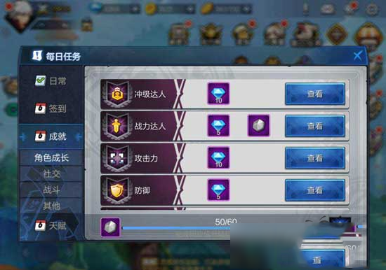 说到刷钻就不能不提游戏中的成就系统了,在游戏中玩家每完成一个成就,都会获得相应的钻石奖励。成就的类型多种多样,可以去查看完成各类成就的条件,有能力了就尽量去完成它,来获取更多的钻石。