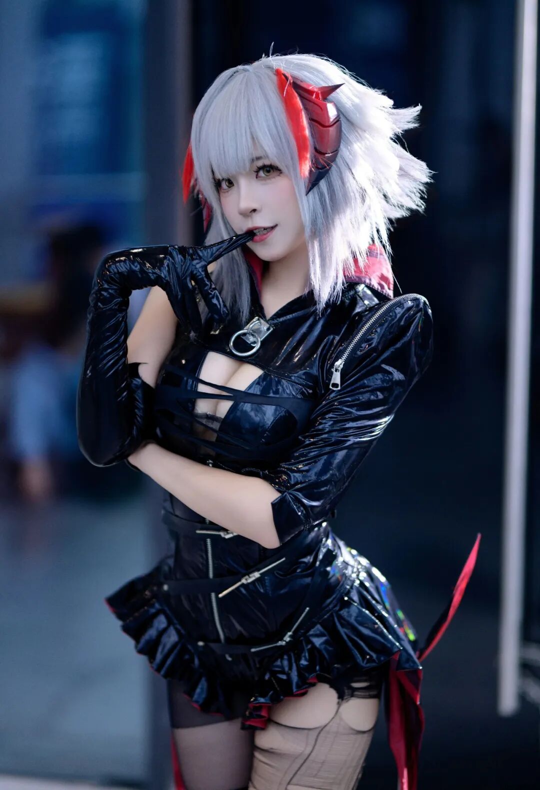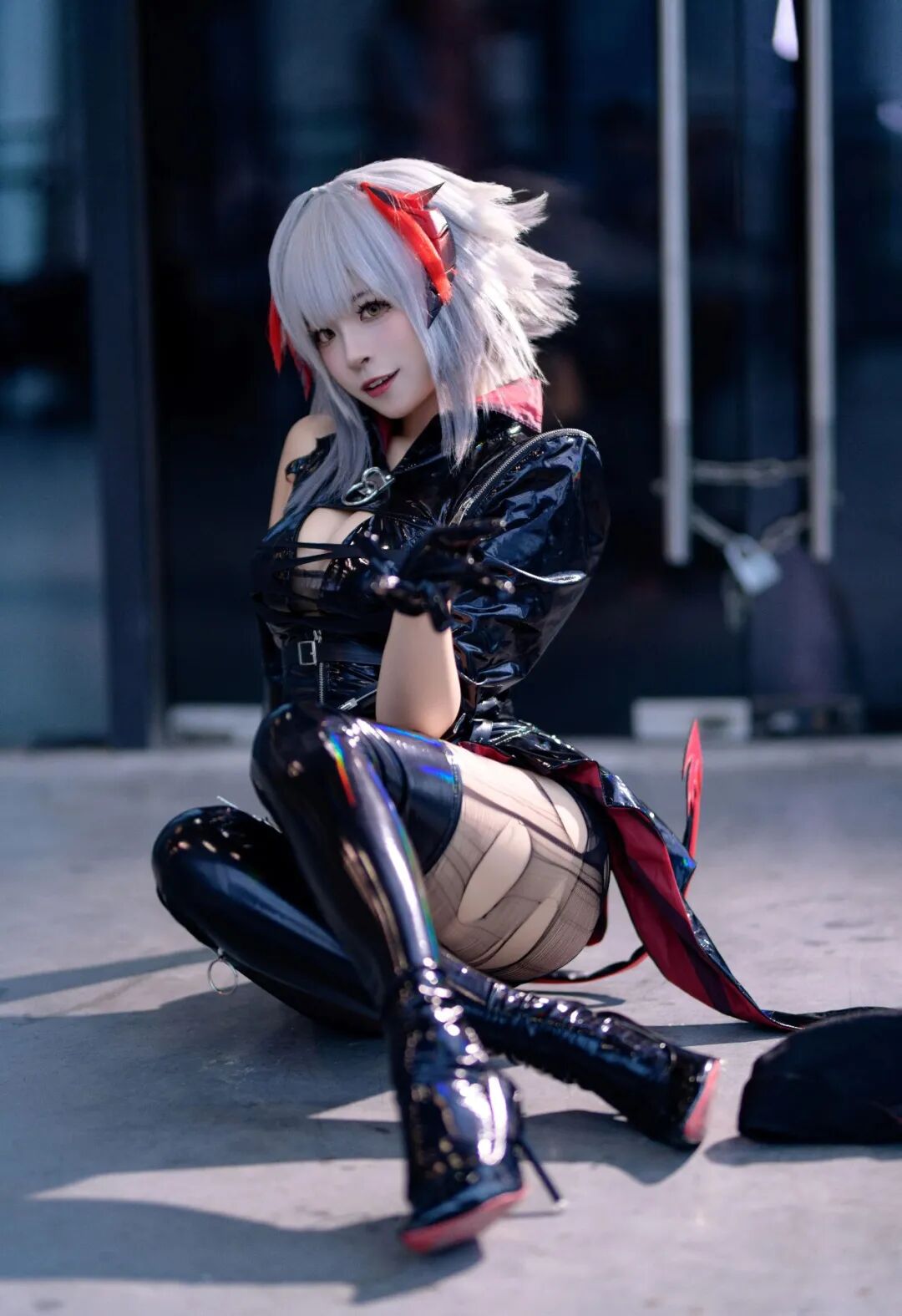 明日方舟Cos:长筒皮靴,破洞黑丝,大秀身材事业线