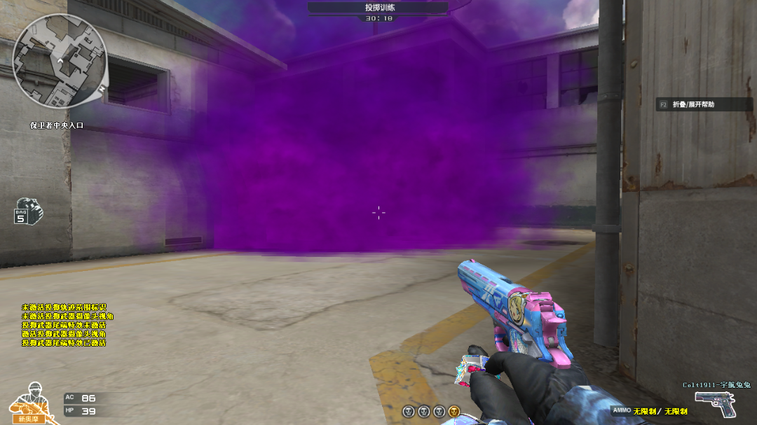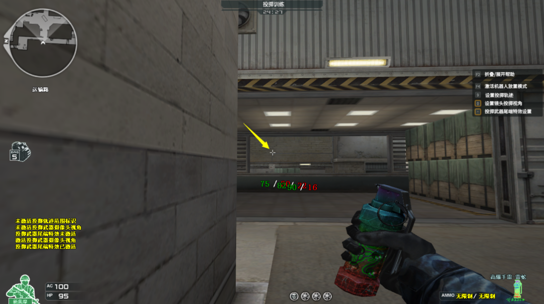 上图便是这颗手雷的实战效果,它可以对狙楼楼梯以及斜箱后的敌人造成很高的血量伤害,实战作用是非常大的。