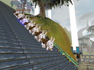 这便是大名鼎鼎的莆莆骑士了,圆圆滚滚、白白胖胖与新手村门口的莆莆如出一辙,长耳朵、大眼睛,还有两个精致的铃铛,样子可爱至极,怪不得一直受到男女玩家的共同喜爱。
