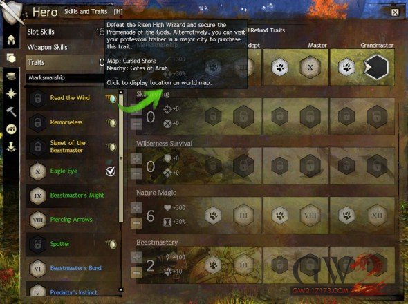 现在主要的特性需要通过特性指南书进行解锁,这是激战2游戏中一个全新的道具。双击物品就能解锁相应的特性。你可以通过游戏内容来获得特性指南书,例如:副本的故事模式、迷你副本、WVW、个人故事、特定的首领以及在地图上探索某些区域。虽然我们希望让玩家们通过战斗或者探索来获得特性,但是我们知道这并不是每个人都喜欢的游戏方式,所以我们将在专业训练师处继续出售特性指南,指南书的价格将根据特性等级定价。