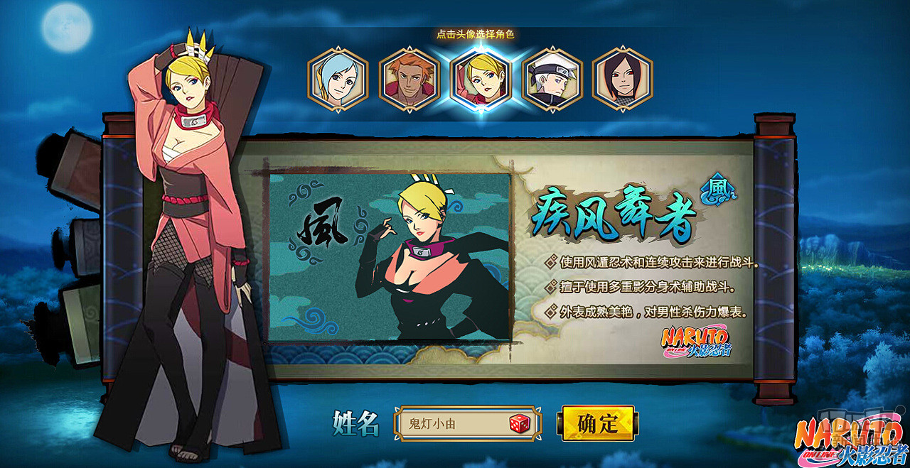 在《火影忍者OL》中,全新推出5位主角协助鸣人完成火影之梦。主水的忍者以医疗忍术为主,主土的擅长体术偏向肉盾,主风偏向纯输出,而主雷以及主火的都偏向输出也伴随控制向。玩家在根据剧情走向达到11级后,即可招募属于自己的忍者。