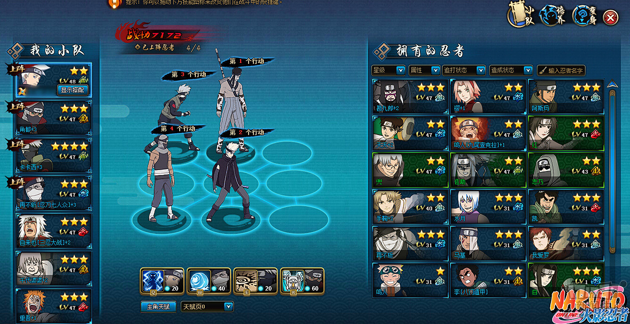 此种搭配的优点是:所用忍者选择的范围比较大,战术也相对有趣。