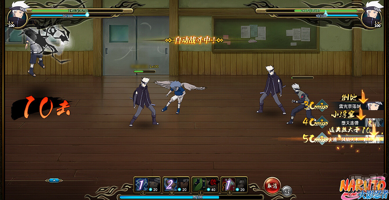 使自己的角色尽可能多的进行combo的搭配方法,特别是一些忍者拥有多个追打击(如佐助[疾风传]),或是追打击可以触发多次(如千代婆婆[近松十人卫]),使用他们进行忍者搭配,可以实现一回合内针对单一忍者进行精确集火的可怕搭配。游戏中,玩家可以在忍者界面查看自己拥有的忍者小队,在选定拥有的忍者后,可以查看显示搭配,系统会根据你所选定的忍者进行combo搭配,在图标左上角显示combo的,即可在战斗中进行combo连击。想要测试combo搭配的队伍伤害数值以及连击数可在竞技场内测试完成。
