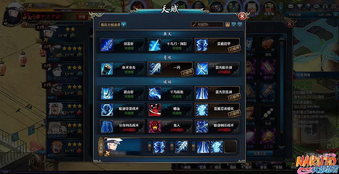 目前游戏**有59位忍者可供玩家招募选择,玩家可通过精英副本任务来收集忍者碎片招募忍者,从普通的小七班,到阿斯玛、红、君麻吕、鹿丸等忍者都可从任务中获得碎片。