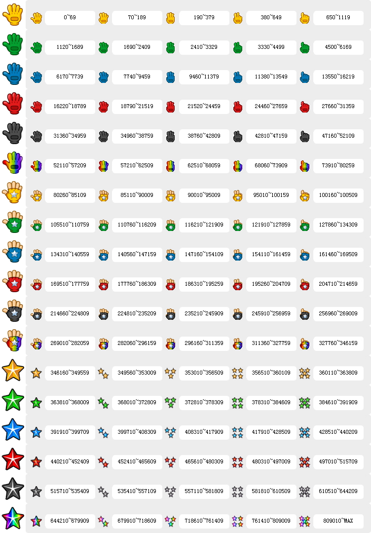 最新经验值对应手套样式