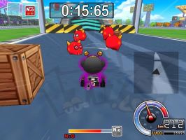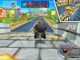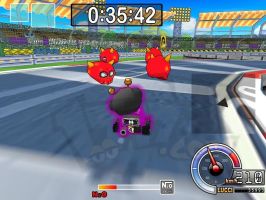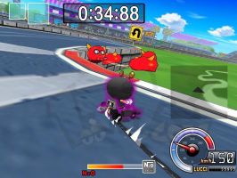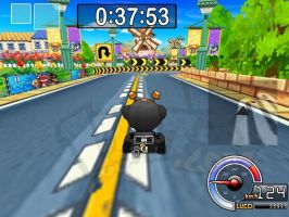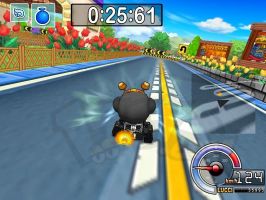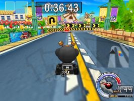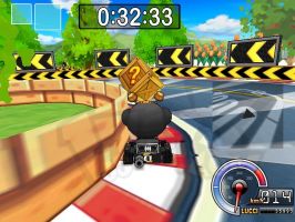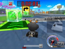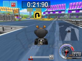| 后面就是掩护黑妞先到终点。之前你会吃到两个导弹,只要两个道具全部扔出去就可以了,你再过第2个捷径拿到一个炸弹出捷径再拿到一个炸弹(这时你应该在NPC的前面)到桥那里NPC会超过你,你只要赏两个NPC一人一个导弹全部打中的话你就赢了 |