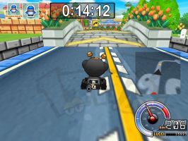 | 开始的时候上图这里最好小飘一下,不过不要飘的太大,因为要过一个大弯还有大魔王的干扰。(在有大魔王的干扰情况下,漂移过弯出来以后建议新手不要松前方向喷火,那样容易掉下去) |