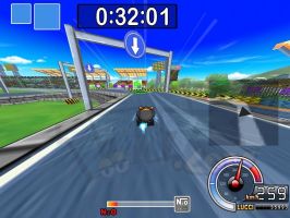 最后本有三个连续三个喷射点的地方也是本图一大难点。这里的小技巧就是飘移进第一个喷射点时,要打好提前量使车近乎垂直朝右,这样被推过的时候,就能顺势从第二个喷射点上通过了。 |
