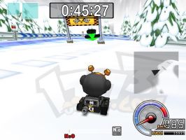 | 后面的路段都是大多数都在雪道下坡,说明一下,有的弯道大家最好打好提前量,提前飘,这样就会没什么大问题的。还有一个这以后的弯道可不要象前几个过门的弯道那样用力飘,这时飘移力度要小一些。另外一点需要注意的是,所有有断层的地方都是需要加速器才能通过的。 |