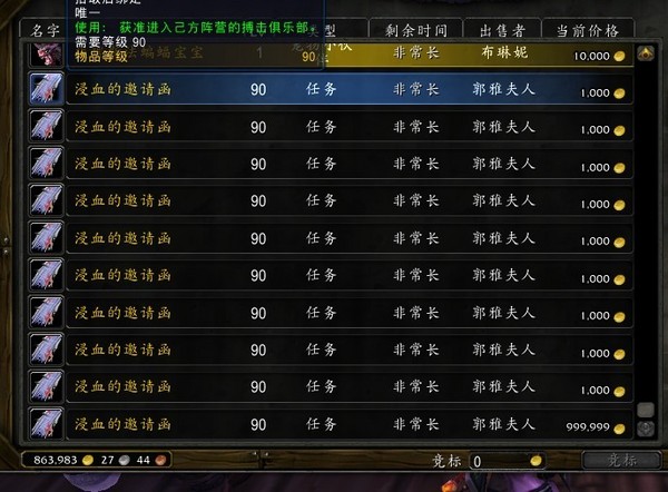 注意那一堆1000的没人竞标,最后一个确是999999