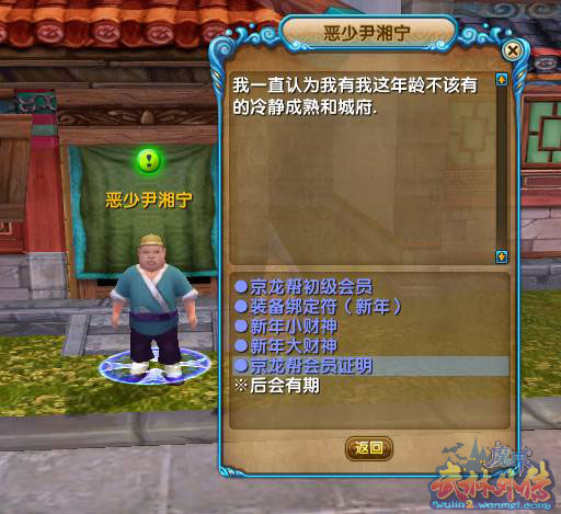 二、京城NPC“恶少尹湘宁”,每周为京龙帮成员发放7个会员证明,凭借该证明可组队领取“京龙帮在行动”任务。