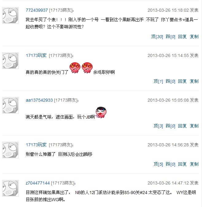 长期浏览17173的玩家想必知道,前不久我们报道了祥瑞的新功能-提高移动速度。报道后玩家纷纷对比表示抵制。觉得其严重破坏了游戏平衡。