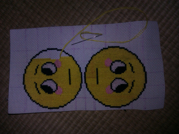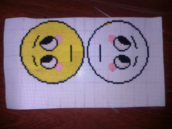 感觉大家都偏爱17号表情,笔者也一样。在游戏中常用这个表情,对这个表情有着深厚的感情。故而, 某天,路过十字绣店的时候,看到一个有点像17号包纸的,果断买下,然后。就是慢慢的修改,希望能一点一点把这个小东西改好,更像17号表情包纸